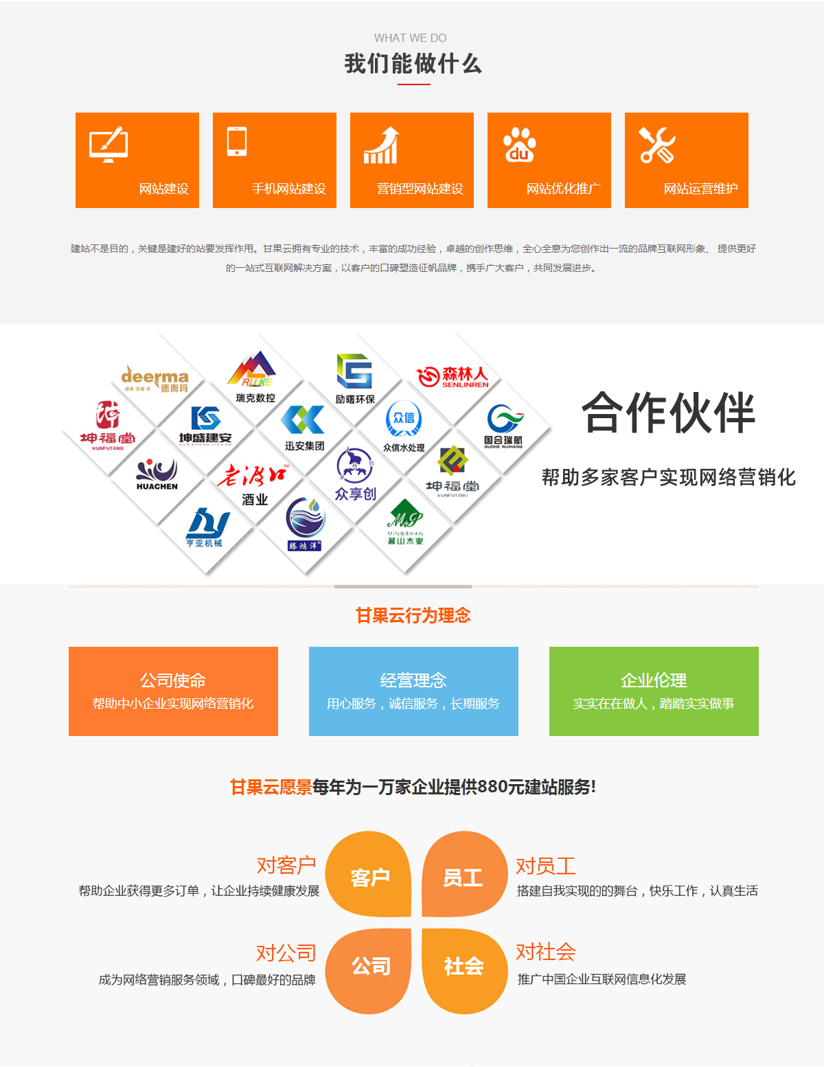 甘果云建站平台依托甘果云建站系统为企事业单位提供专业的官网建设、搜索推广、搜索推广账号托管、百度爱采购开户和维护、微信小程序开发、APP开发推广、淘宝拼多多开店和托管和短视频营销等专业的互联网营销推广服务。